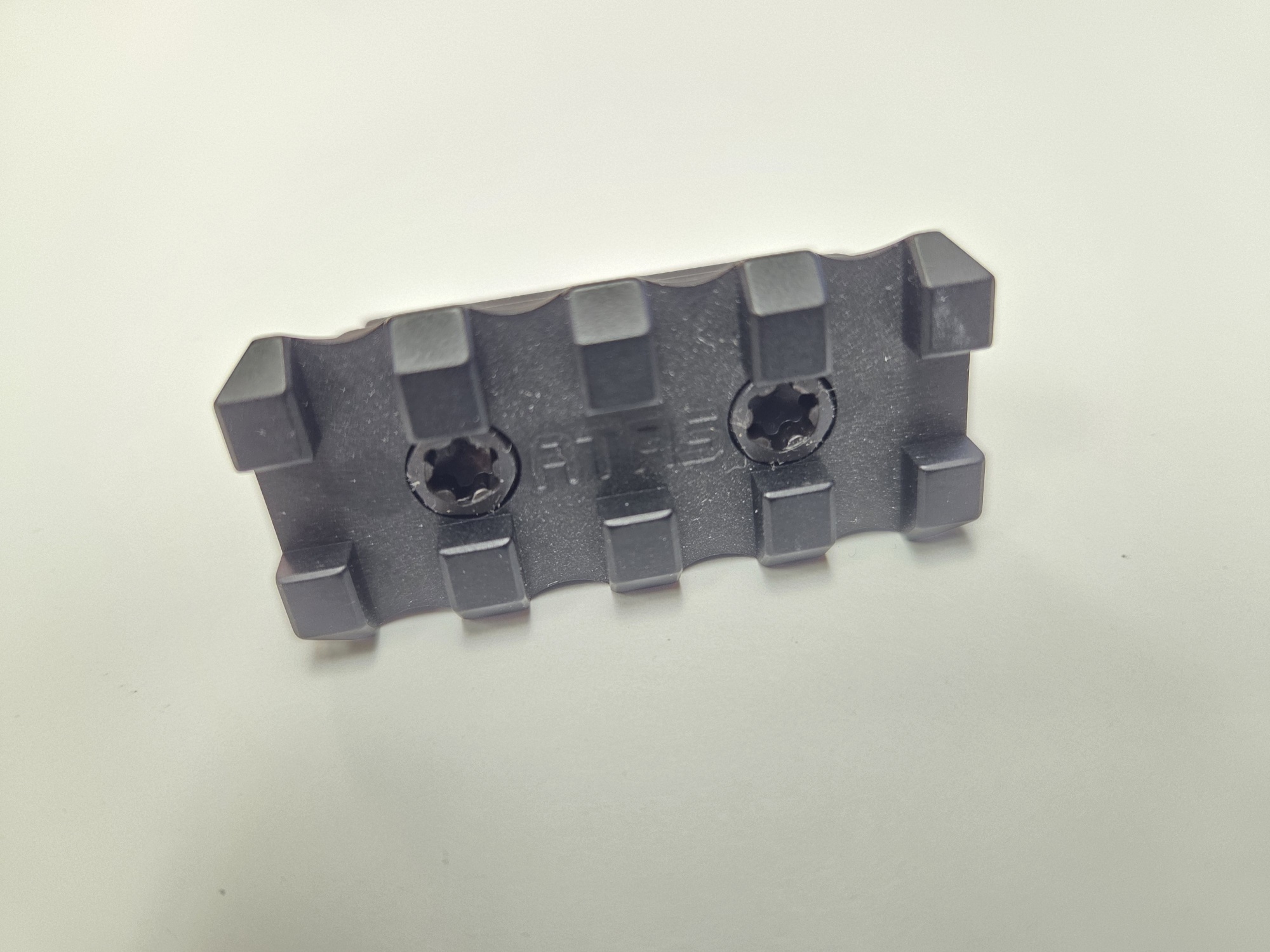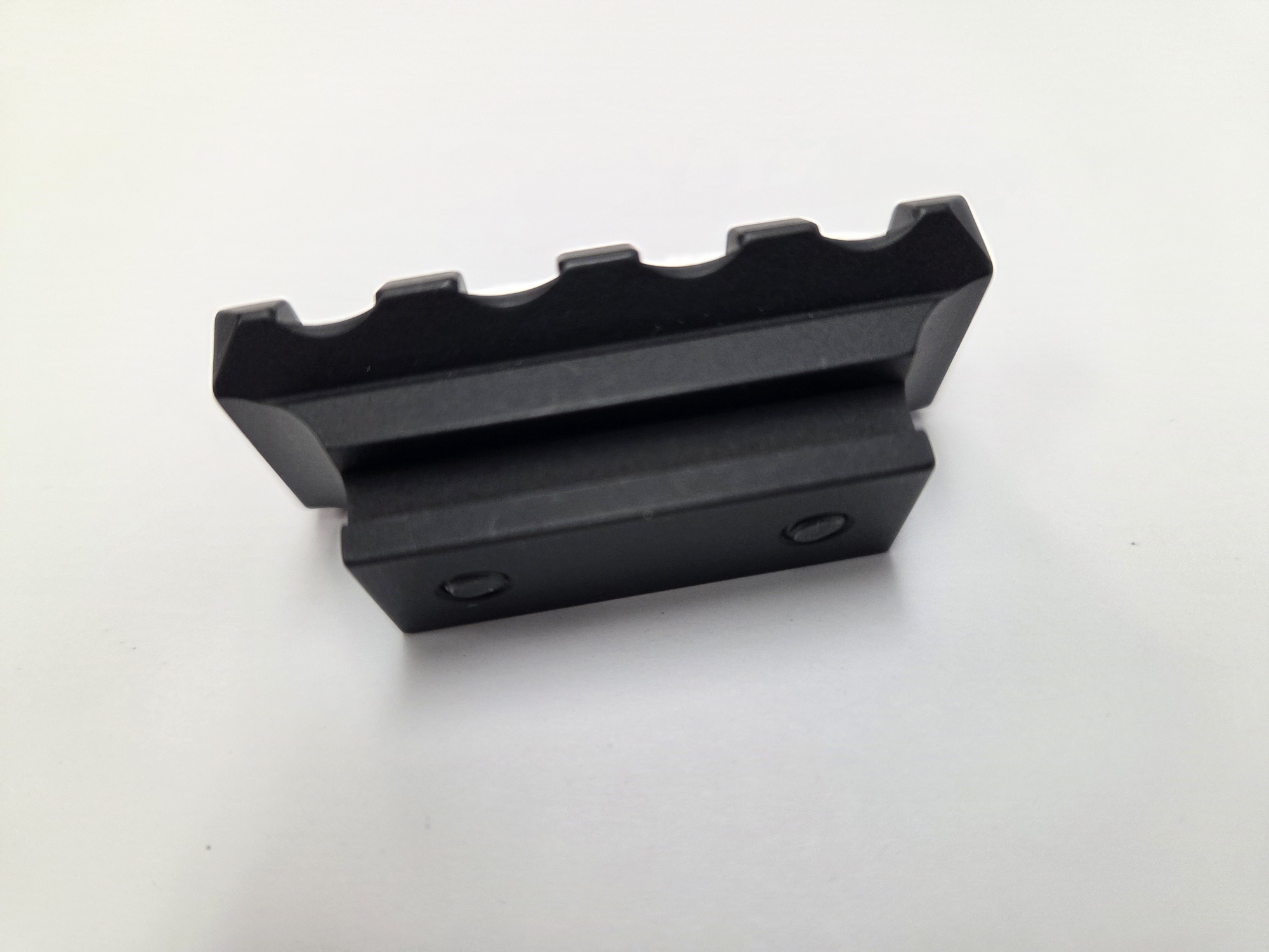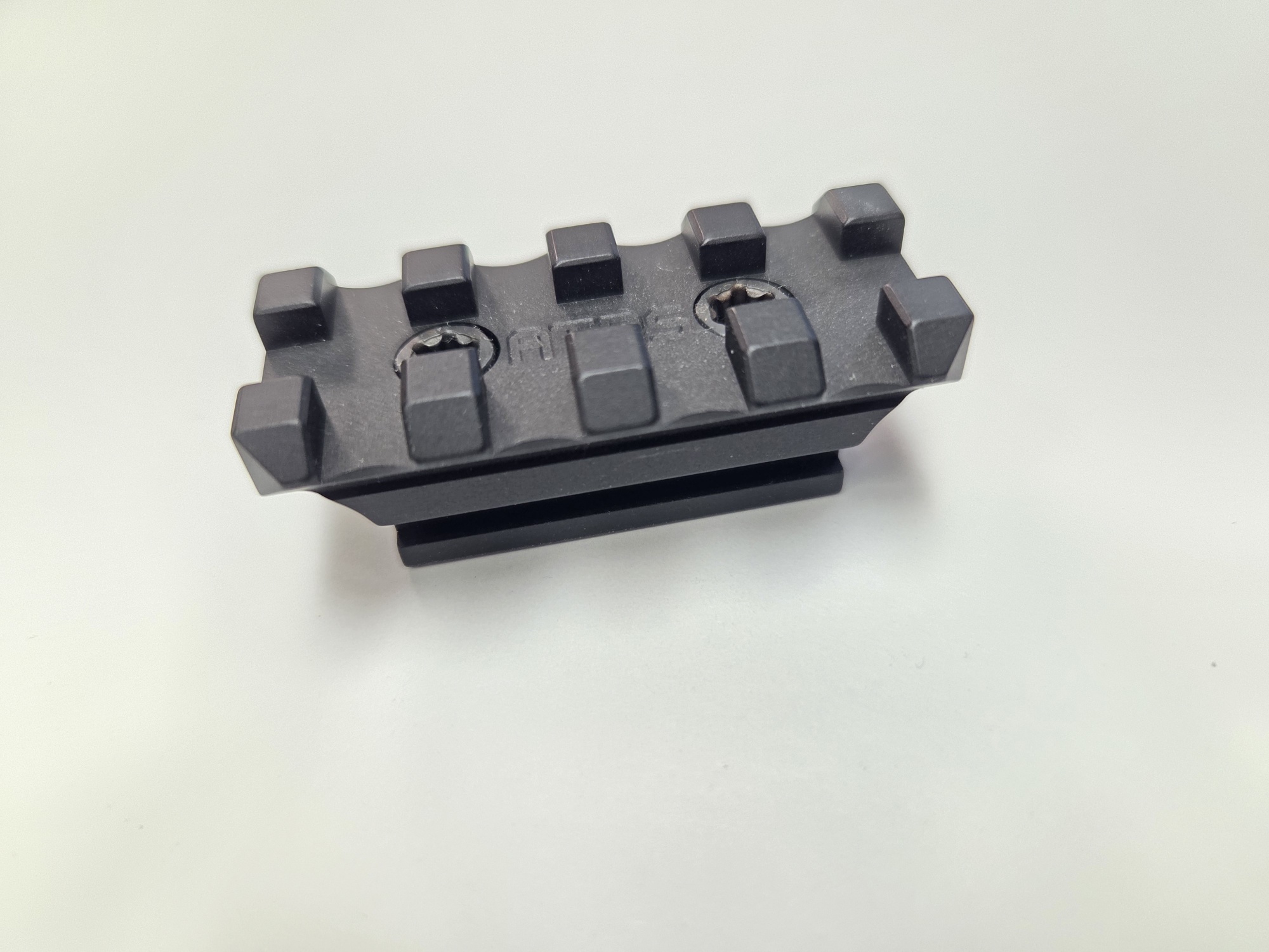 This is an adapter that fits into the T slot track of Anschutz rails, and has a picatinny rail section. It is secured by two screws that you tighten so it cannot slide.